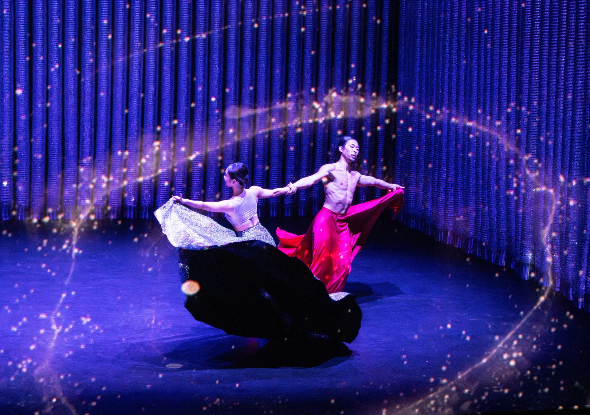 Entering this fantastical world are holograms of five young guest dancers, four of them born in the year 2000, a Year of the Dragon. They share their individual hopes and fresh perspectives on how the past and the future can coexist. Together they celebrate the vitality of the hyper-connected Gen-Z and its ability to shift and change in a tumultuous world.