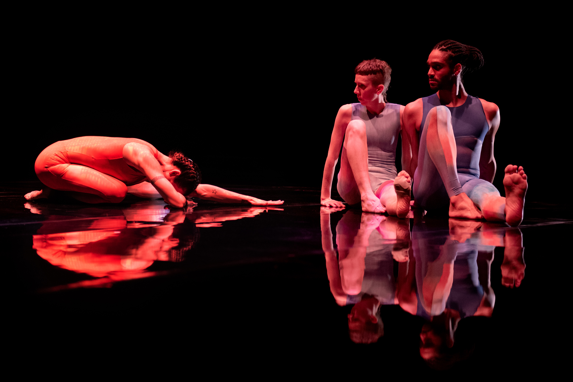 how did we get here? received its world premiere at Sadler’s Wells Theatre in January 2023, and explores the unique physicality of these three performers, as they strip back familiarity and habit to reveal what’s written and held in the body. The intimate production, originally performed in the round with audiences sat on stage, has been captured from multiple angles to offer yet more perspectives on the work.